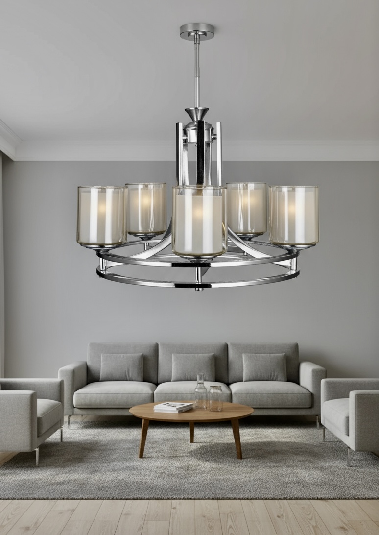 سالن پذیرایی: این نوع لوستر میتواند به عنوان نقطه کانونی در سالن پذیرایی عمل کند و فضایی گرم و دلپذیر ایجاد کند.